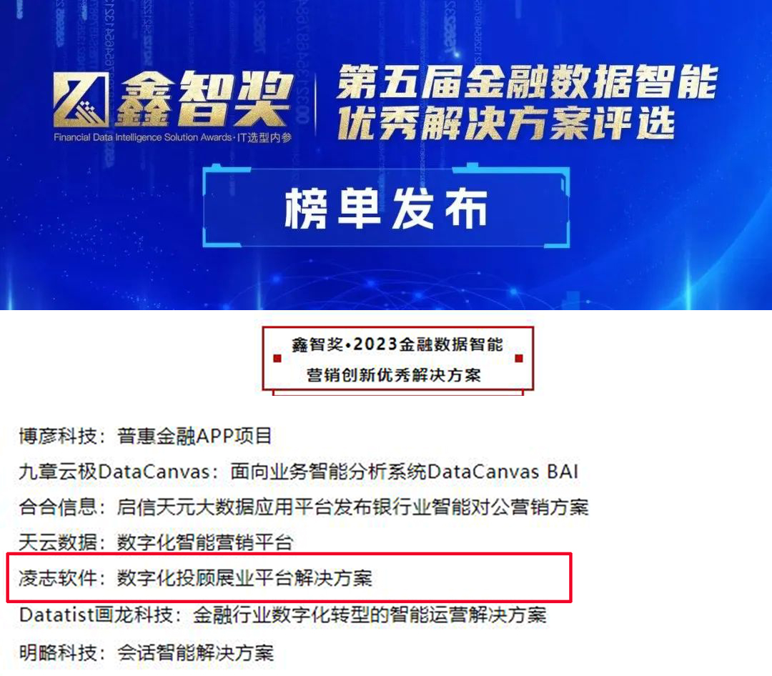 為展示金融企業(yè)數(shù)據(jù)管理和數(shù)據(jù)平臺智能化轉(zhuǎn)型成果,分享大數(shù)據(jù)和人工智能在金融科技場景的落地實踐,日前,金科創(chuàng)新社發(fā)布了《鑫智獎·第五屆金融數(shù)據(jù)智能優(yōu)秀解決方案評選榜單》,凌志軟件數(shù)字化投顧展業(yè)平臺解決方案憑借其技術(shù)先進性及創(chuàng)新性,榮獲“鑫智獎·2023金融數(shù)據(jù)智能營銷創(chuàng)新優(yōu)秀解決方案”稱號。