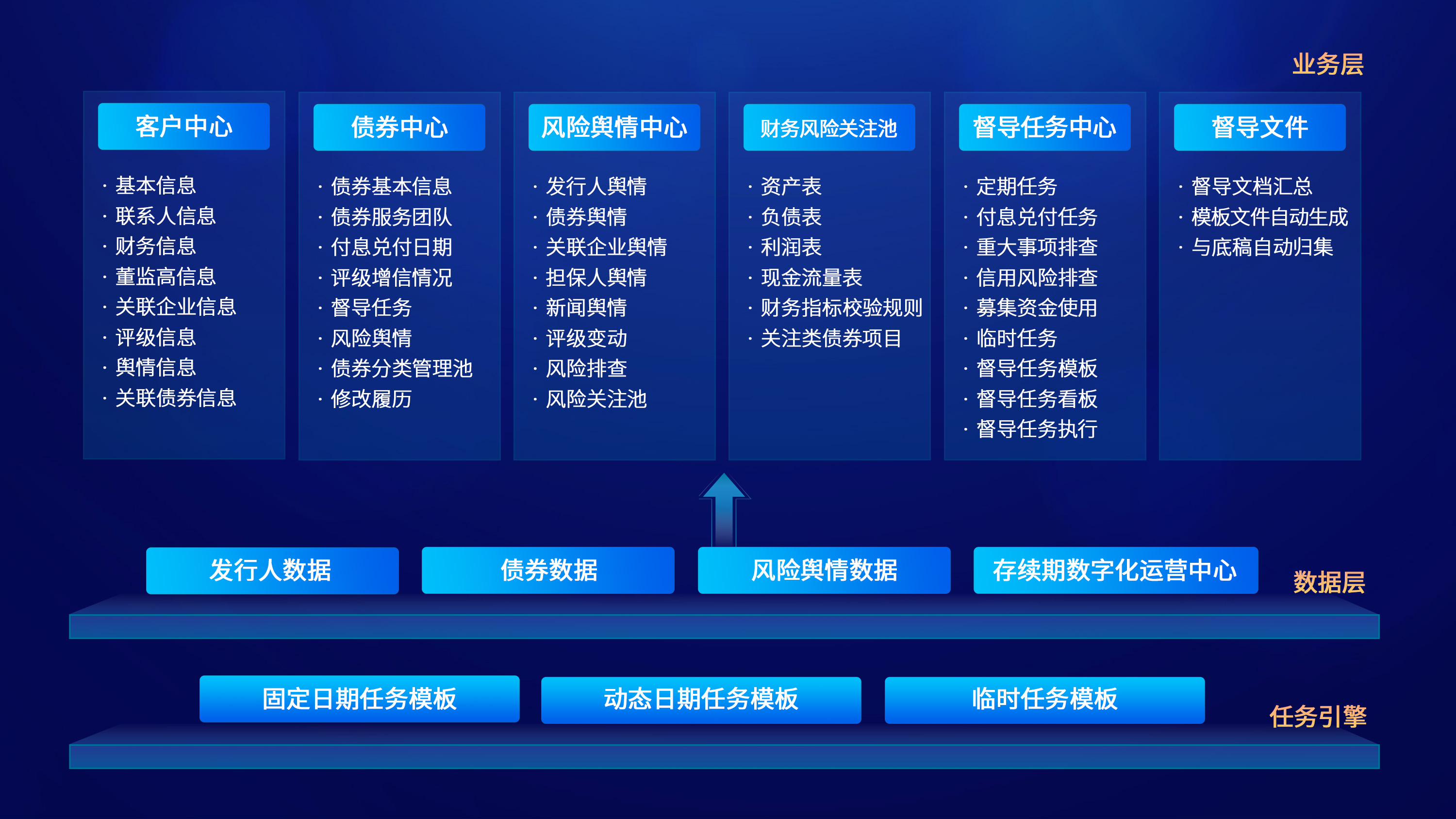 隨著金融市場的不斷發展和進步,債券市場作為重要的融資渠道之一,其監管和風險控制日益受到關注,投行作為受托管理人,監管機構對其在債券存續期間的核查要求越來越詳細,質控要求也越來越嚴格。同時,面對違約事件頻發的困境,受托人在業務執行和合規管理方面急需專業技術平臺的支撐。